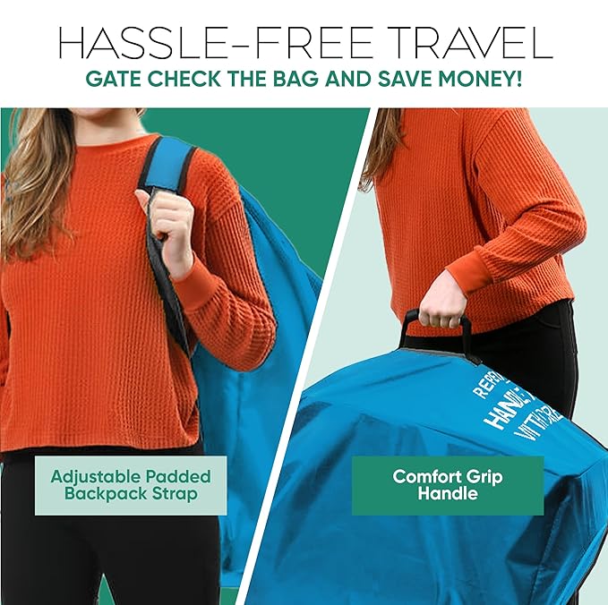• Premium Quality Nylon – Constructed with high-grade and super durable nylon fabric, this stroller bag is double stitched and tear proof, ensuring lasting protection for your stroller during airplane, train, and car travel. Built for frequent use with superior durability.
