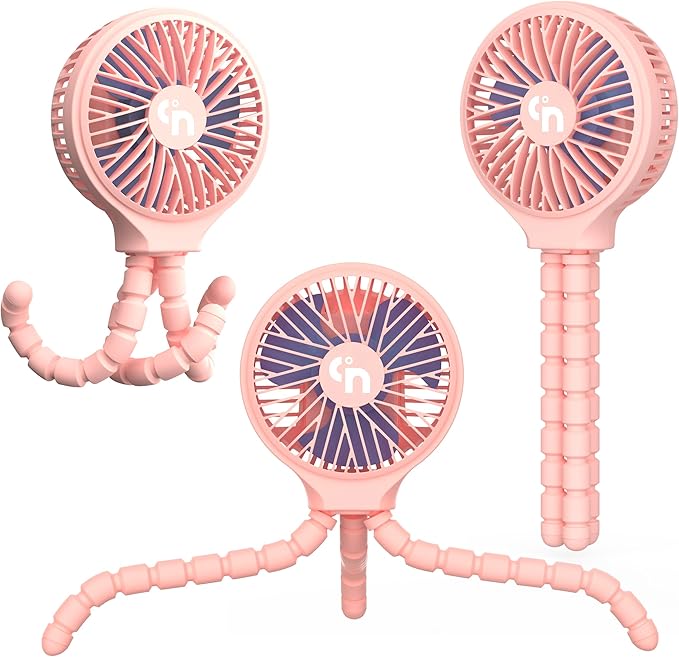 HomeLifairy Portable Stroller Fan, USB or Rechargeable Battery Operated with 3 Speeds and 360°Rotate, Cooling Clip On for Baby Crib Travel Car Seat Pink