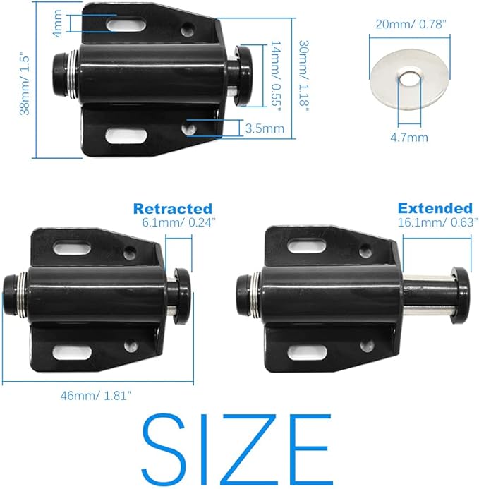 • 【Application Scenarios】Push to open door catch can be used in cabinet, drawer, cupboard, wardrobe, chipboard, sideboard, cooking utensils and another furniture.