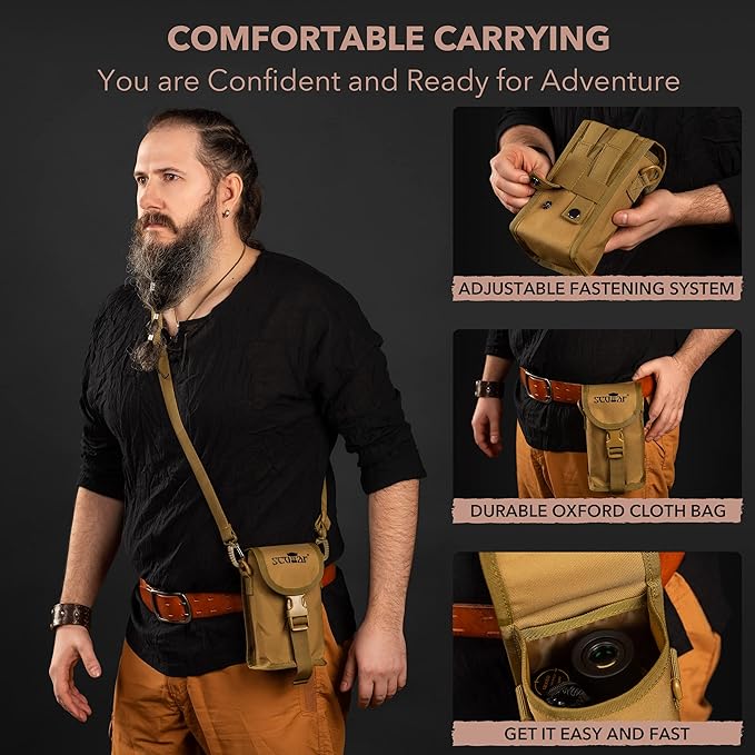 • INCLUDES SET OF ACCESSORIES: Unlike most monoculars for adults high powered telescopes for stargazing or bird watching, Scotar gives you a great bang for your buck. Meaning besides the high-definition pocket telescope, you get a thoughtfully designed pouch, smartphone adapter, and mini tripod that is sure to make your exploring, hunting, or fishing more exciting and fruitful