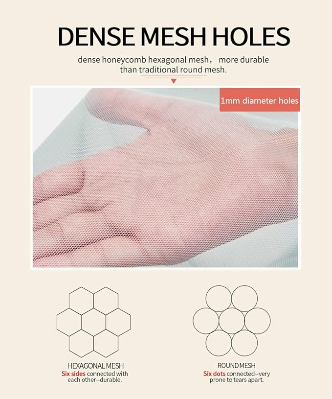 • ✔ Dense Mesh Holes: This bug net for stroller with 1mm diameter honeycomb hexagonal mesh, more durable than traditional round mesh.Perfectly against tiny mosquito with Ventilated and breathable.
