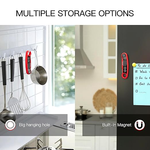 • Versatile Use, Convenient and Practical: Designed with a large hanging loop and a strong built-in magnet, this thermometer can be easily hung or securely adhered to metal surfaces, adapting to a variety of usage scenarios and improving efficiency. It's a breeze to handle in kitchen and barbecue settings.