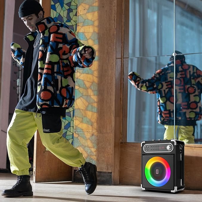 • 【Karaoke Machine with Cool Disco lights】The partybox have a unique disco lighting design. The lights can jump with the rhythm of the music, and you can also switch to a variety of lighting effects for any party or gathering to create a cool dynamic atmosphere. You can enjoy the light show while listening to your favorite music, giving you an unforgettable karaoke experience.