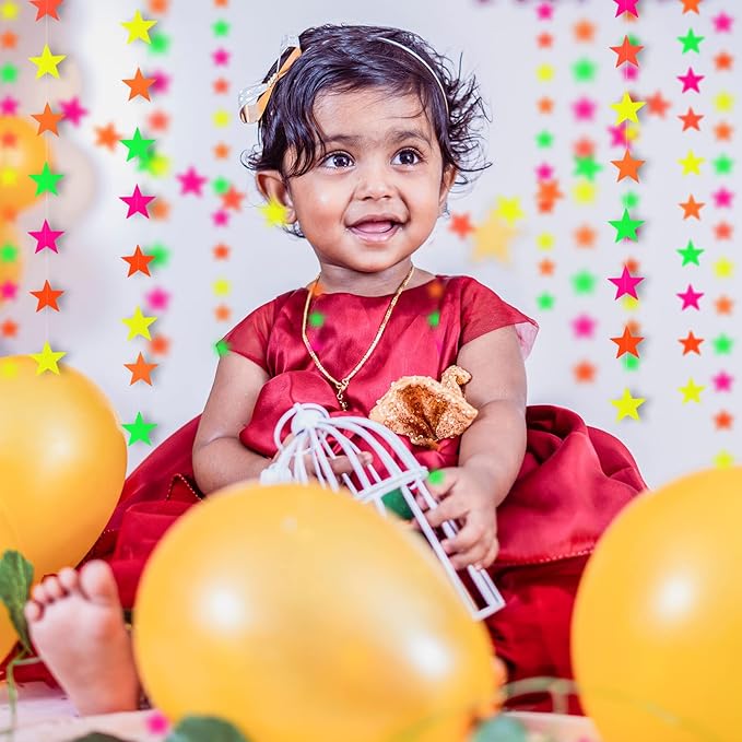 • 【All Occasions】the luminous crepe paper Star Garland are suitable for black light party decorations,fluorescent party,birthday party holiday carnival, graduation, anniversary, wedding, fetes, festival celebrations, baby showers, school activities. Especially Perfect for Neon Glow Party Supplies.