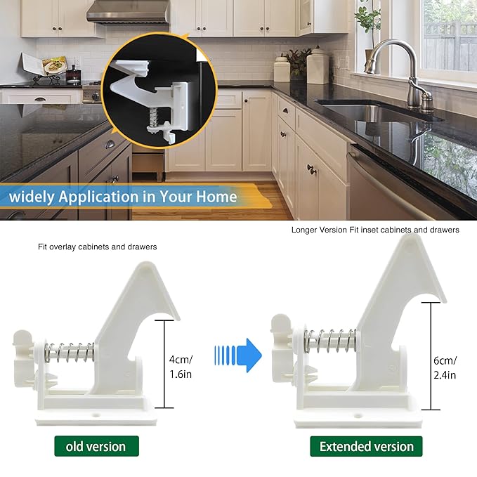 • 3.5 Inches Longer Cabinet Locks for Babies fit inset Cabinets and Drawers 10 Pack
