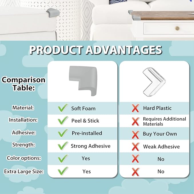 • Child-Friendly Material: Our baby proofing edge guards is fully compliant with US and EU child safety regulations. Free of BPA, Phthalate, Latex, Lead and SCCPs, which makes it a great choice for daycare centers, schools, nurseries and your family.