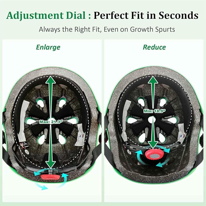 • 【Adjustable Kids Toddler Helmet Set 】- The helmet for kids has an adjustable knob in the back, can easily adjust to a perfect fit for kids, Helmet head circumference: 48-54 cm/18.9"-21.3", suitable for toddlers aged 3-5 and kids aged 5-8, one bike helmet set can be used for a few years