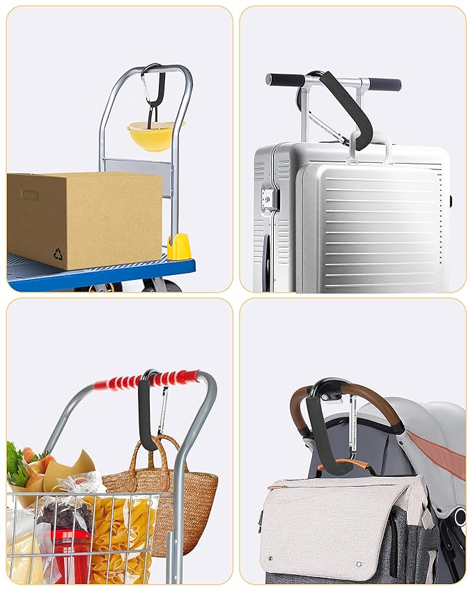 • Universally Applicable: for cart hooks, stroller hooks, suitable for carrying grocery bags, can connect bags to luggage, hiking, camping, connecting multiple dog ledges, wheelchair use.