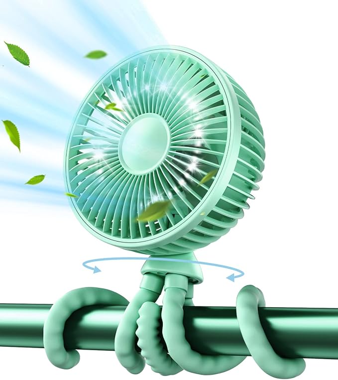 • Upgraded Tripod and Safe Gap for Baby: The entire arms of the handheld fan are food-grade silicone for great grip; 5.6 mm gap of baby fan is smaller than other desk fans, safe for little fingers; Stroller accessories and fans for baby infants and toddlers