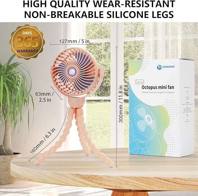 • 【Upgraded Flexible Unbreakable Tripod】We used food-grade silicone, so you don't have to worry about the baby eating it by mistake. You can bend any angle you want to set up various forms: stand as a small desk fan, handheld as a mini handheld fan, hanging or winding as a clip on fan, even as a phone holder.
