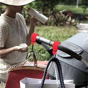 • 【Free your hands】 No need to carry heavy shopping bags and diaper bags when shopping and walking. The hook can not only be used on a stroller, but also in bicycles-shopping carts-pet carts-luggage and other scenes. The stroller hook allows you to completely free your hands.