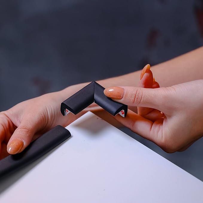 12-Pack Corner Protectors Baby Proof, Furniture Corner and Edge Safety Bumpers, Soft Rubber Foam Cushion Covers, 3M Taped Corner Guards, Baby Child Proofing Pads, Table Corner Protectors, Black