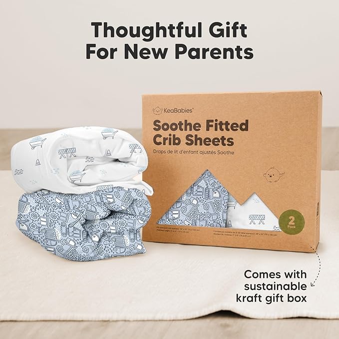 • 2-Pack Baby Crib Sheets - KeaBabies Soothe Fitted Crib Sheets for boys and girls; fit standard crib mattresses (52"x28" with height 3" to 8") perfectly, offering your baby a safe and restful sleep.