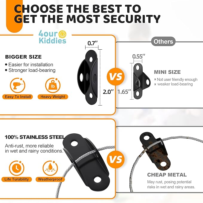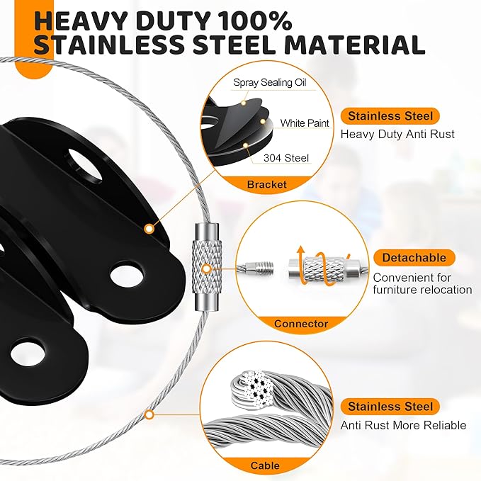 • PREMIUM STAILESS STEEL STRAPS - These furniture straps are made of high-quality stainless steel material, a high resistance to corrosion means that it will never rust during whole life use. And it has a resistance to fire and heat. What’s more, the straps are more sturdy and durable than other plastic straps, which will provide a perfect effect on baby safety.