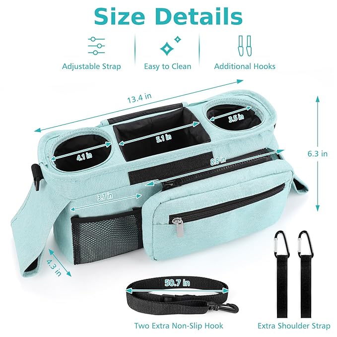 • Multiple Usage Methods : It can be hung as a stroller cup holder organizer on the stroller. When you don't need to use a stroller, you can also install the accompanying strap and carry this organizer bag for easy outing.