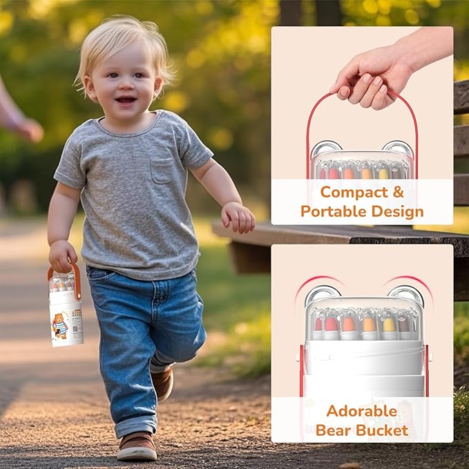 • Non-Toxic & Washable Crayons: Crafted with safe, odorless ingredients and meeting EN-71-3 and ASTM D-4236 standards, these crayons are perfect for kids ages 1-4. They’re designed for easy cleanup—just wipe away any marks from skin, furniture, or clothes—so your child’s creativity can flow without limits or mess (Tips: If it gets too messy, just use a mild detergent to clean it easily.)