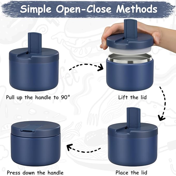• Buckle Structure Lid:Our food container with a press-seal structure, Just pull up the handle to 90 ° to open the lid, which is very friendly to children, so children's little hands can easily open it.
