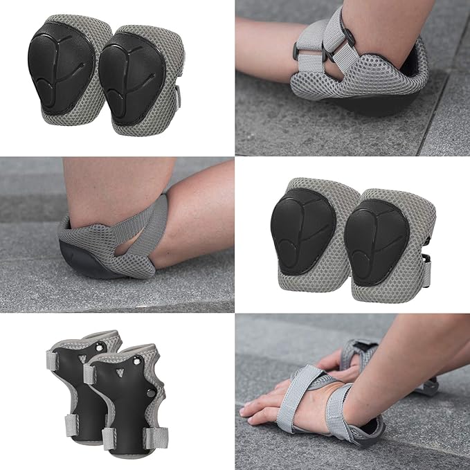• 7PCS Kids Helmet and Protective Gear Set - Includes 1 adjustable helmet, 2 knee pads, 2 elbow pads, and 2 wrist guards—everything your child needs for safe riding. Built with a tough, scratch-resistant PP shell and cushioned interiors for long-lasting protection and comfort.