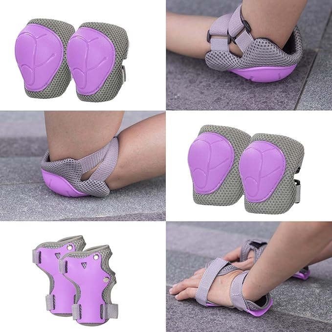 • 7PCS Kids Helmet and Protective Gear Set - Includes 1 adjustable helmet, 2 knee pads, 2 elbow pads, and 2 wrist guards—everything your child needs for safe riding. Built with a tough, scratch-resistant PP shell and cushioned interiors for long-lasting protection and comfort.