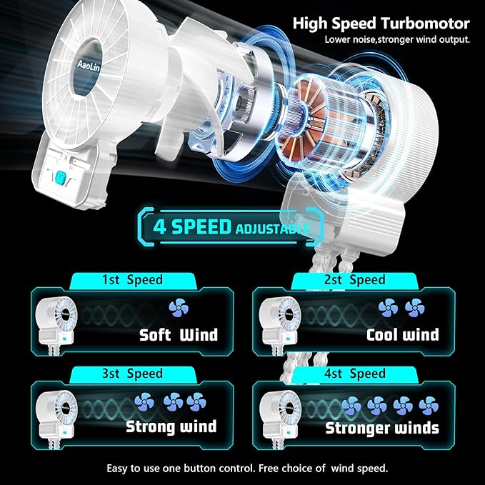 • 【4 Speeds and Quiet】-AaoLin small portable fan built-in high speed brushless motor,It can provide powerful airflow but is quiet.It comes with 4 speeds for different purpose,Its highest gear has a speed of 6600rpm.Summer gifts for kids,travel beach cruise ship essentials,very practical stroller accessories!