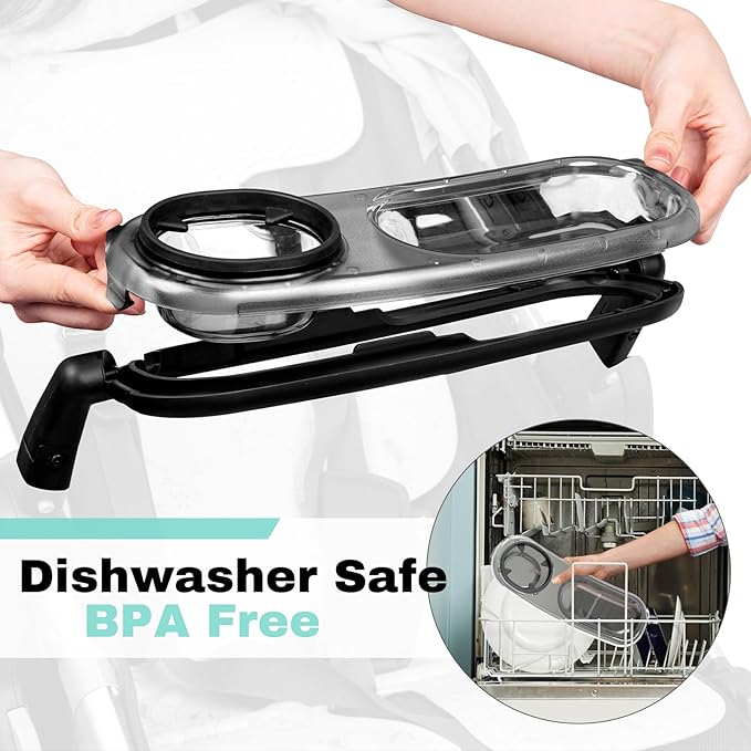 • 【Easy to Clean】The stroller tray is made of BPA-free polyester plastic. You can simply wipe it off or take off the top tray and place it directly in a dishwasher for cleaning.