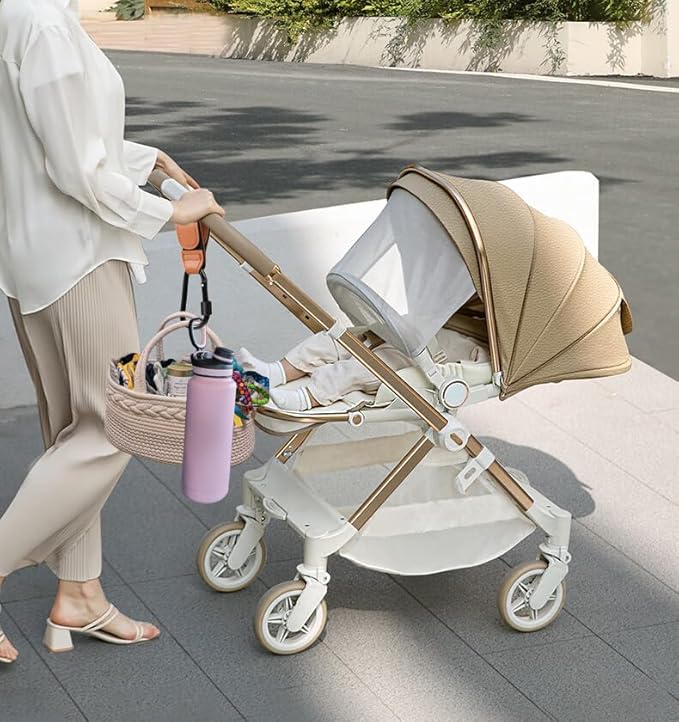 • 【High-quality Material】: The stroller attachment is made of durable high-performance leather fabrics and sturdy aluminum, not plastic, and holds up to 20 lbs(about 10 kg) per stroller hook carabiner. It is recommended to hang within 10 lbs to prevent the stroller from overturning.
