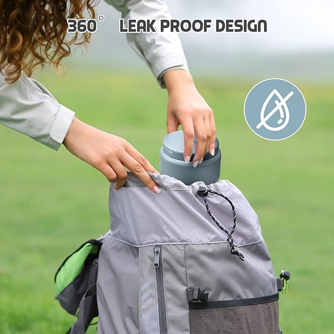• 100% Leak Proof :Our food thermo comes with a thick silicone gasket. It is full sealed. So you can toss it in your bag or insulation bag without worrying about spills. Wide mouth design are also very easy to clean.