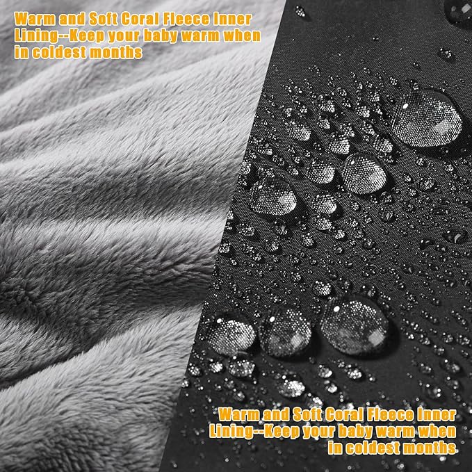 • Cozy Stroller Cover for Winter : Yoofoss stroller footmuff is made of ultra-thick and soft coral velvet lining. Easily pull the drawstring at the top to form a hood to wrap around your baby's head, fully protecting your baby from the cold. No need to prepare a blanket or jacket, your baby still can be wrapped with warmth even during cold weather walks with our stroller winter cover.
