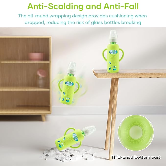 • 【Compatibility】- The baby bottle silicone sleeve is compatible with Dr. Brown's Natural Narrow Glass Baby Bottles 8 oz. (Other series are not applicable)