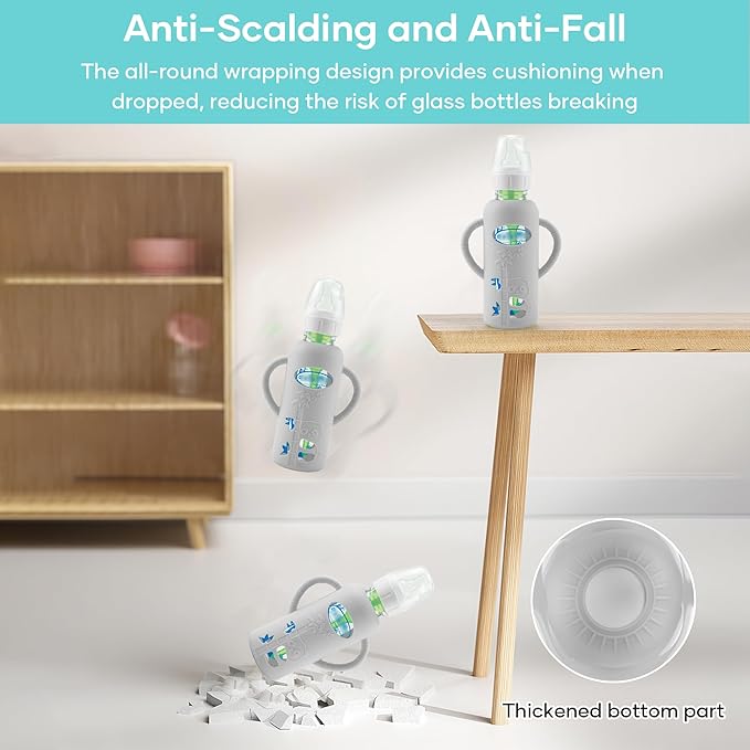 • 【Excellent Protection】- Our bottle sleeves use a full-surface silicone wrap design. Even if accidentally dropped, it can protect the bottle from being scratched or even broken. This is a necessary maternal and child supplies for families who are used to using glass bottles, and there is no need to worry about the bottle always being damaged and broken.