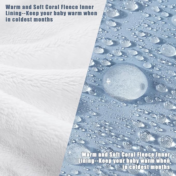 • Cozy Stroller Cover for Winter : Yoofoss stroller footmuff is made of ultra-thick and soft coral velvet lining. Easily pull the drawstring at the top to form a hood to wrap around your baby's head, fully protecting your baby from the cold. No need to prepare a blanket or jacket, your baby still can be wrapped with warmth even during cold weather walks with our stroller winter cover.