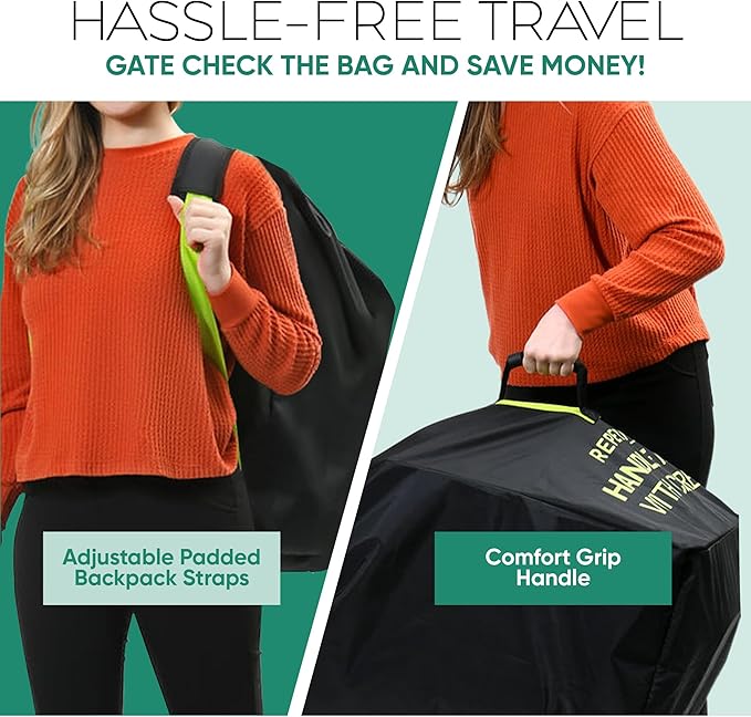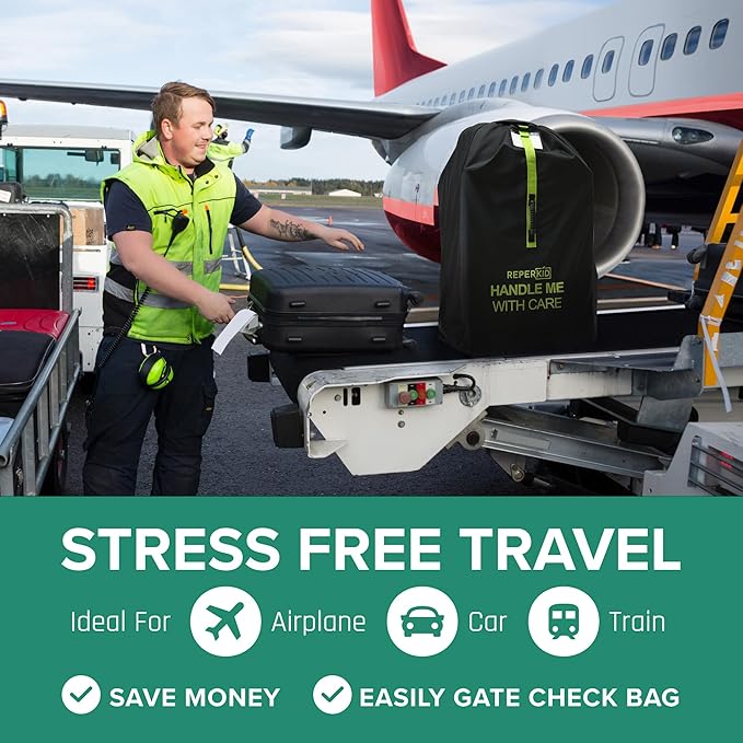 reperkid Medium Stroller Bag for Airplane Travel, Black & Green, 42" H x26 W x13 D, Fits Most Single Strollers Incl. Jogging & Standard Models – Premium Waterproof Cover, Adjustable Shoulder Straps