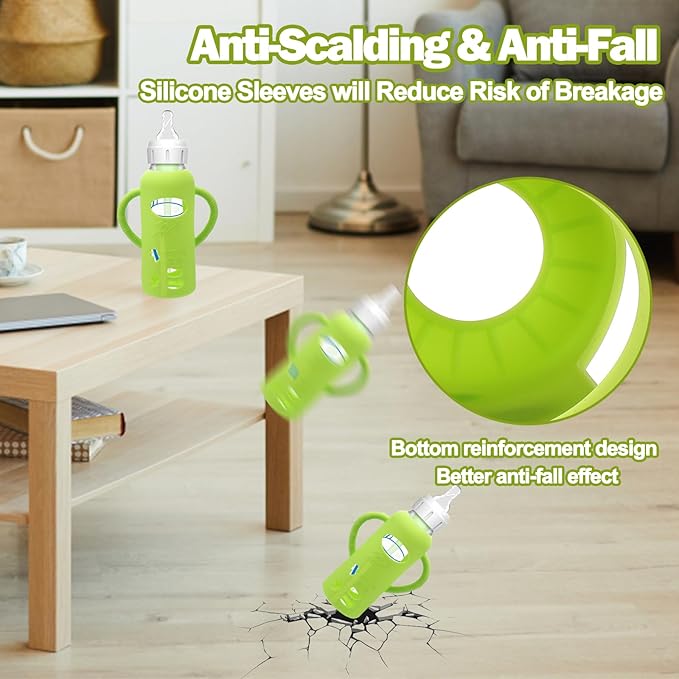 • Unique Designed for Baby Bottles - The silicone sleeves for Dr. Brown's Baby Bottles can against drop down,bumps and scratches. These are a must essential product for using glass baby bottles. They provide a more sturdy protection for glass baby bottle from breaking if dropped, which also unique handle design shape make it easier to grip and hold