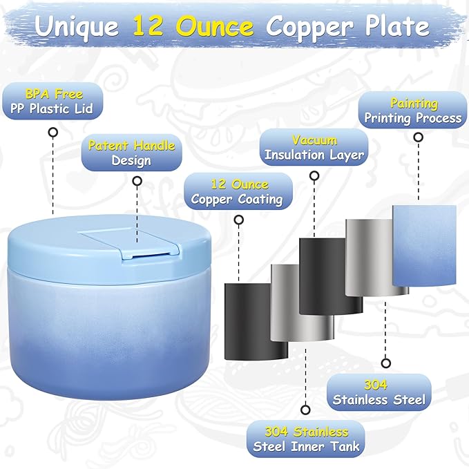 • Upgrade to 12 OZ Capacity: Bigger capacity can hold more food for children. The stainless steel soup thermal bottle is a double wall, with a vacuum in the middle, has good insulation performance, with a wide mouth design that is easier to clean.