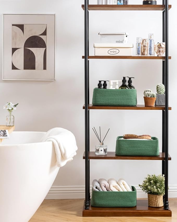 • [ Elegantly Designed to Match Any Décor ] Our small rope basket creates a minimalist appearance, and it adds a touch of warmth and texture to any room. The classic solid color design ensures seamless integration with your existing aesthetics, complementing any decoration. Perfect as decorative storage baskets for shelves, cabinets, and any open display space, making them a stylish and practical addition to any decor, enhancing the overall aesthetics of your room