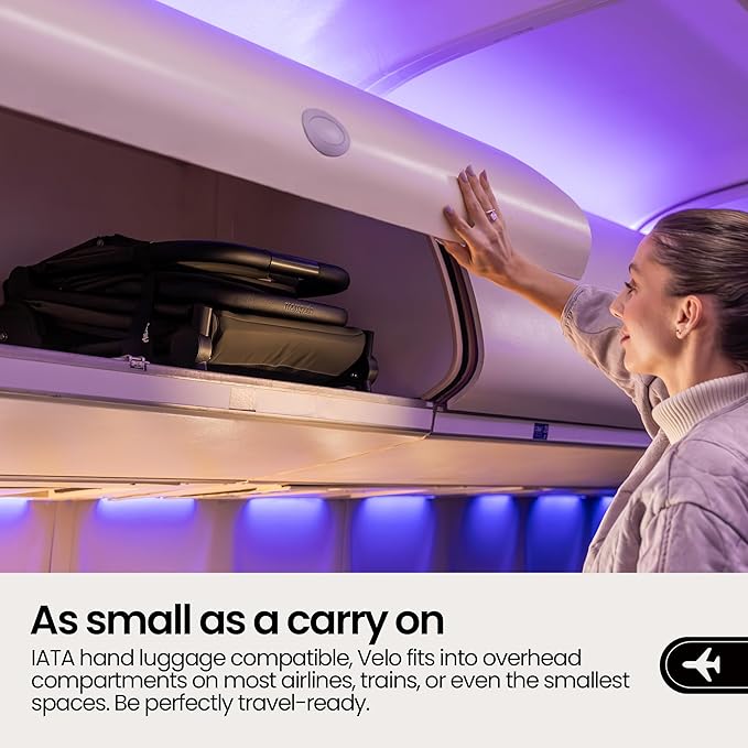 • Overhead Friendly: IATA hand luggage compatible, the Velo fits into overhead compartments on most airlines, trains, or even the smallest spaces. Ultra-compact fold: 17x8x20 in