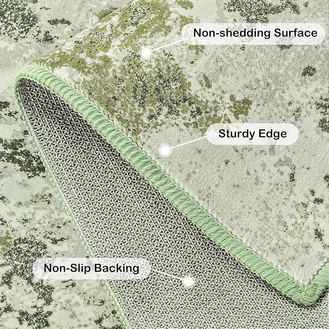 Kelarea 6x9 Rug for Living Room, Green Washable Non-Slip Rugs, Modern Abstract Large Rugs Low Pile Soft Carpet for Bedroom, Kitchen, Dining Room, Classroom, Dorm, Nursery, Home Office