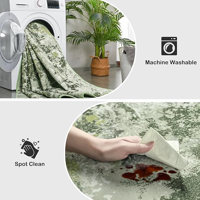 Kelarea 5x7 Rug for Living Room, Green Washable Non-Slip Rugs, Modern Abstract Large Rugs Low Pile Soft Carpet for Bedroom, Kitchen, Dining Room, Classroom, Dorm, Nursery, Home Office