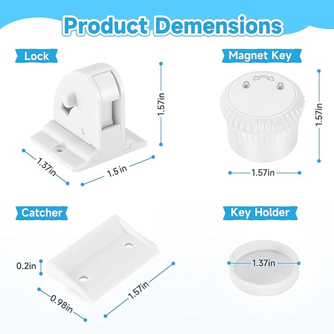 • Easy Installation: No tools or drilling are required for this magnetic door lock installation; simply measure and install using strong 3M adhesive. There's no need to drill holes or screw into your cabinets and drawers, and the adhesive can be removed without leaving any trace. Protect your child's safety without damaging your furniture