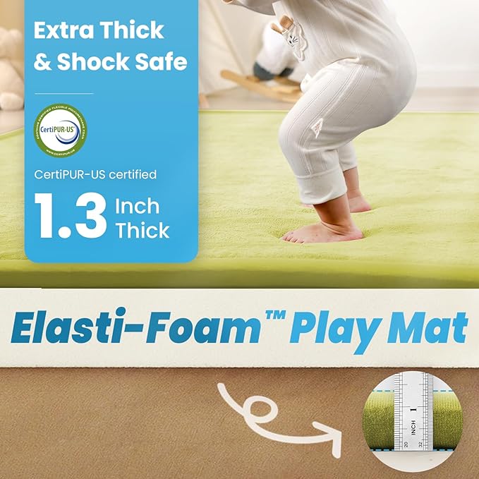 • Extra-Thick Cushioning for Impact Absorption: Featuring 1.3-inch premium memory foam,this baby floor bed mat offers superior shock absorption—softer than standard mats—to reduce bumps and injuries when toddlers roll or crawl off surfaces.