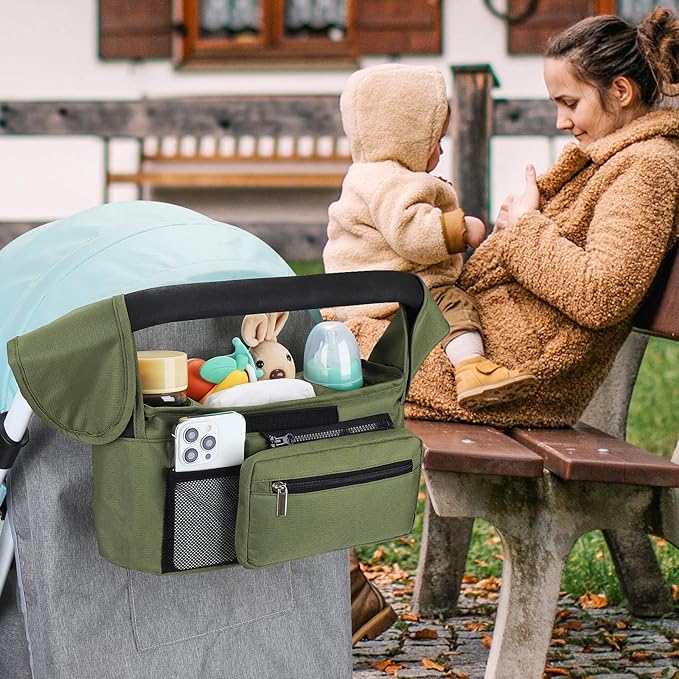 • Multiple Usage Methods : It can be hung as a stroller cup holder organizer on the stroller. When you don't need to use a stroller, you can also install the accompanying strap and carry this organizer bag for easy outing.