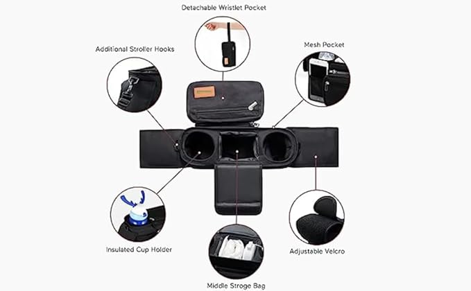 • ✅ UNIVERSAL STROLLER FIT – Attaches to most stroller brands with strong adjustable Velcro straps. Perfect for travel, daily walks, and errands — a must-have parent console for easy access to essentials.