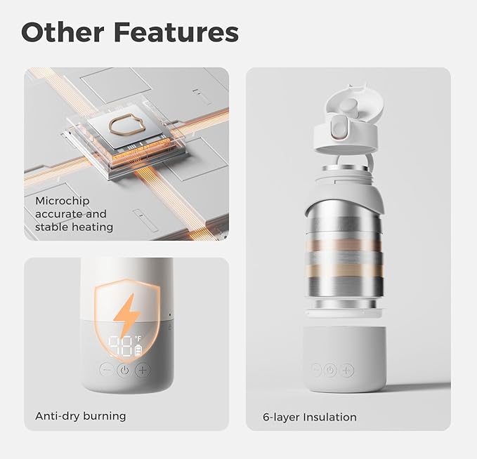 • Warming Milk Easier: Wireless and compatible. Whether at home, on the go, airplane, or in the evening, you can easily prepare warm milk for your baby anytime, anywhere, for a hassle-free feeding experience.