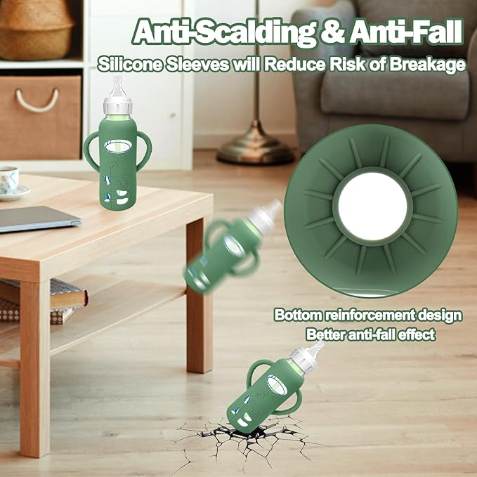• Unique Designed for Baby Bottles - The silicone sleeves for Dr. Brown's Baby Bottles can against drop down,bumps and scratches. These are a must essential product for using glass baby bottles. They provide a more sturdy protection for glass baby bottle from breaking if dropped, which also unique handle design shape make it easier to grip and hold