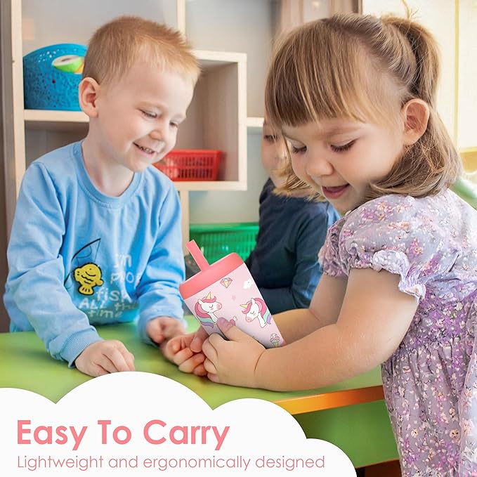 Kid Insulated Stainless Steel Tumbler with Silicone Straw, 12oz Sippy Cup for Kids (Dreamy Unicorn)