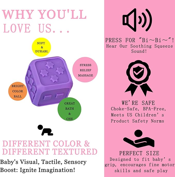 • Multicolor Infant Toys: Engage your baby with bright colors and interesting textures that encourage visual and color perception, making these balls a favorite for infants and toddlers