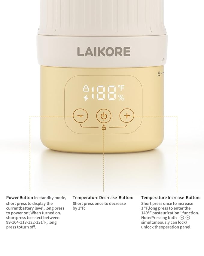 • 【Cordless & Rechargeable for Total Portability】This baby bottle warmer features a detachable 1000mAh battery, making it completely cordless and ideal for use anywhere—whether you're on a road trip, camping, or just out running errands.