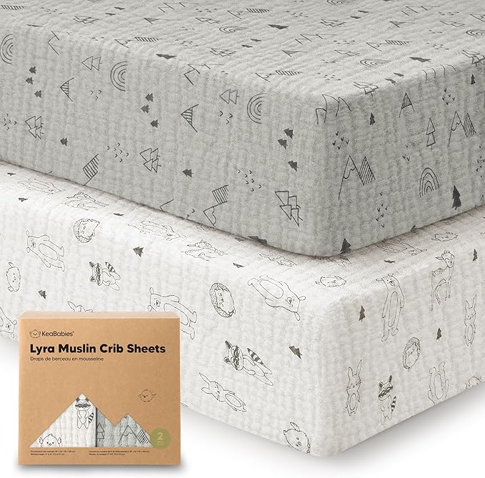 • Lyrically Soft & Breathable - KeaBabies Lyra Muslin Organic Cotton Crib Sheets Fitted keep your baby cozy all night. Exceptionally breathable crib sheets for all-seasons, these toddler sheets soothe baby like a lullaby for peaceful, restful sleep.