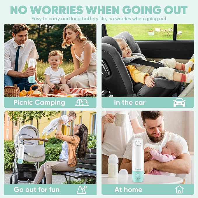 • 【3 Minutes Efficient Heating Technology】: Portable bottle warmer uses an advanced ceramic electric heating plate liner heating method to ensure that the heating process is safe and reliable. This portable baby bottle warmer uses advanced heating technology to quickly warm milk from room temperature to 98°F in just 3 minutes.