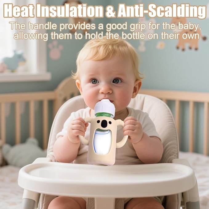 • Thermal Insulation & Maintain Liquid Temperature:Silicone bottle protectors have good heat insulation properties, which can effectively prevent the hot water in the bottle from scalding the baby's little hands or skin. Even when the bottle is filled with high temperature liquid, the sleeve can keep the external temperature moderate, convenient for parents and babies to use safely